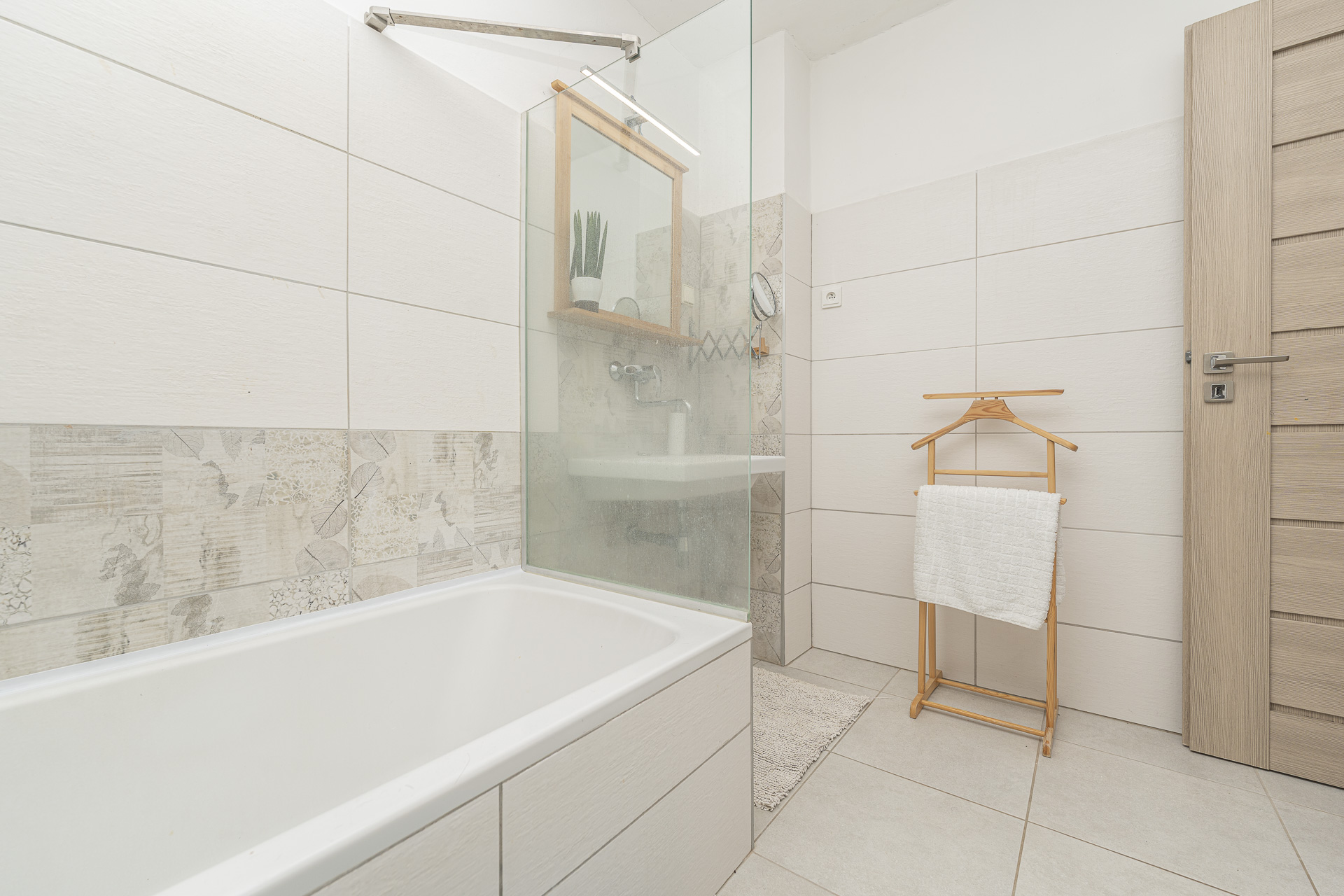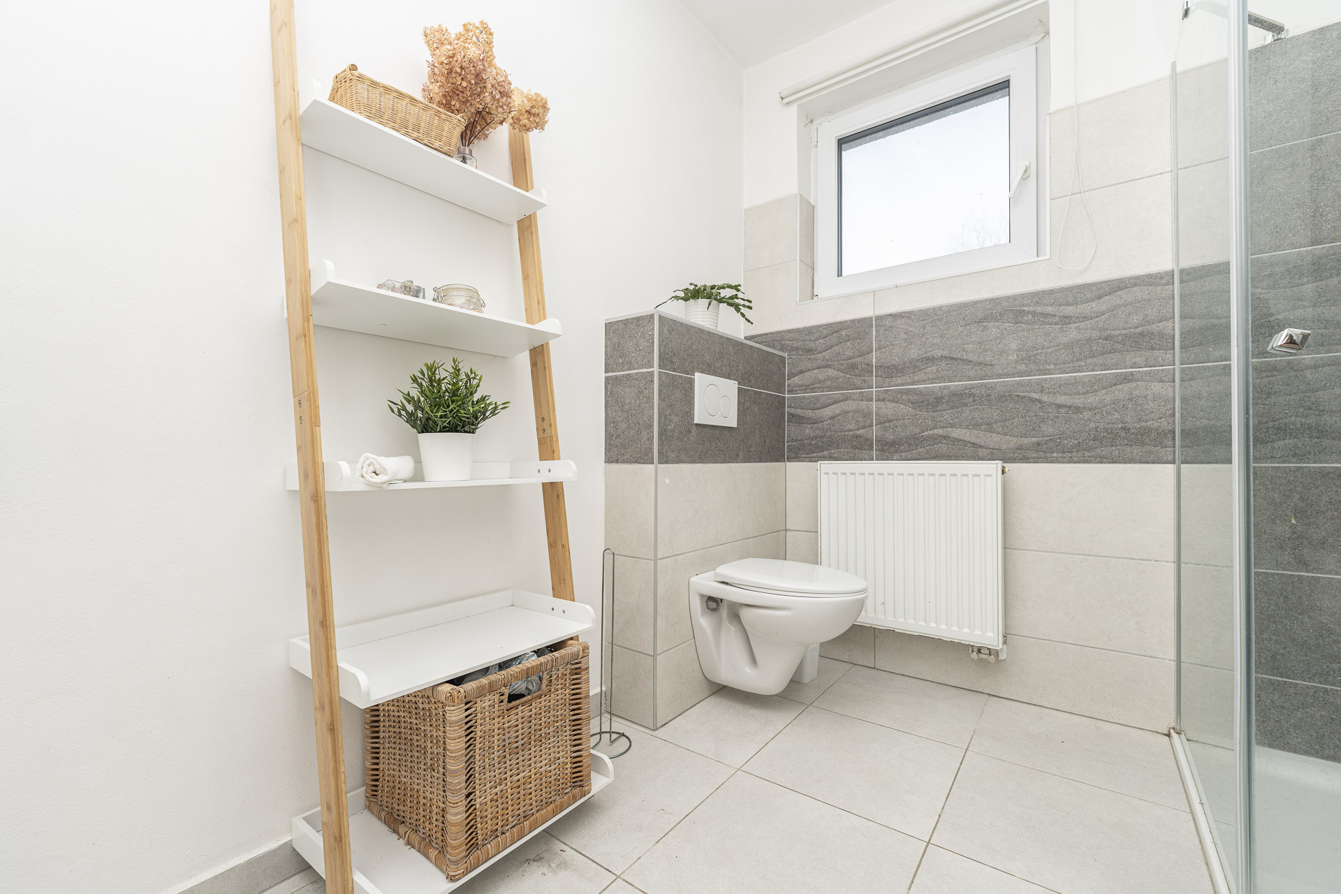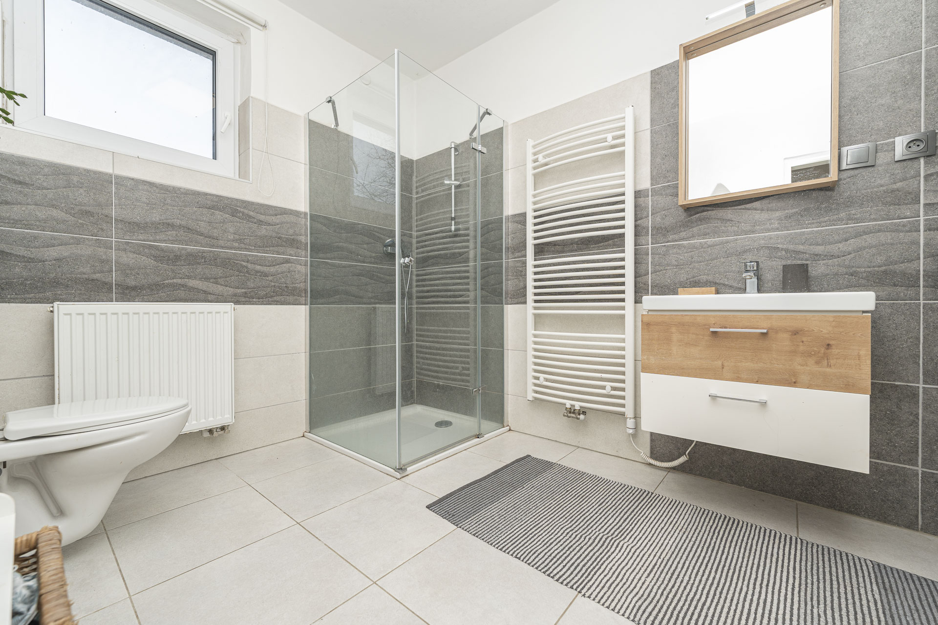 – koupelna se sprchovým koutem a WC: 7,7 m²